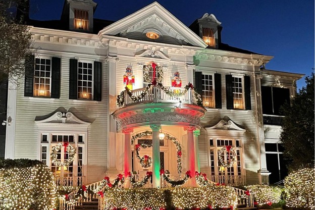 A December visit wouldn’t be complete without a slow drive (or streetcar ride) down St. Charles Avenue, where some of the city’s grandest homes go all-in on holiday decorating. From stately mansions wrapped in garland to whimsical yard displays, it’s one of the easiest, and most beautiful, ways to enjoy New Orleans Christmas lights. Many visitors plan an evening stroll just to take it in.